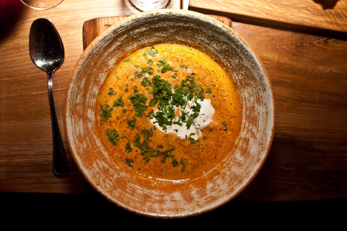 Torkad fisk serveras med karameliserad smör och brännvin smaksatt med tång, soppan på hälleflundra kommer med ett glas sherry och det moderna veteölet som kryddats med färsk timjan gifter sig felfritt med torsken. Enkelt, chosefritt, jättegott.