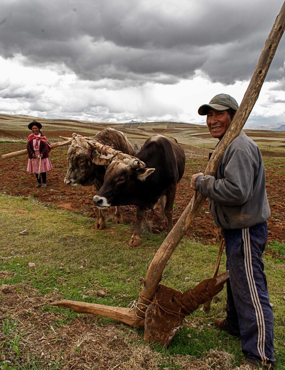 Tidigt på morgonen har vi på smala grusvägar rest längs djupa raviner upp mot närmare 4 000 meters höjd, från Cusco till byn Chivay i Colcadalen. I dessa djupa dalgångar har cabanas- och collaguasindianerna, ättlingar till Inkafolket, odlat majs och potatis på de terrasserade sluttningarna i flera hundra år. På en av sluttningarna ser vi en man med en piska i handen som driver sina båda oxar framför sig och en kvinna i färgrika kläder som styr träplogen. I Anderna bär kvinnorna sina vackra kläder både till vardags och till fest. De är måna om traditionerna och hattarna på deras huvuden berättar vilken by de kommer från och vilken indianstam de tillhör.