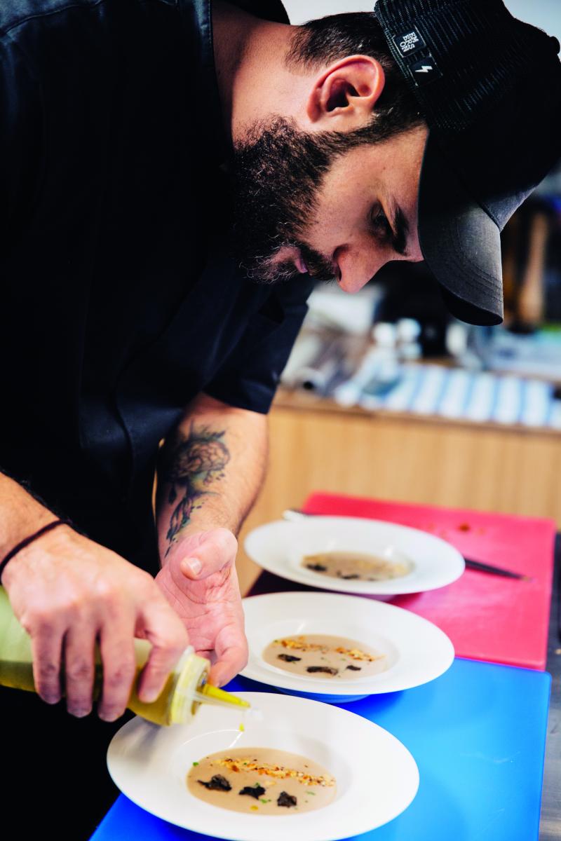 På kvällen får jag se prov på kreativiteten och på typiskt Thessaloniki-manér delar sällskapet på en mängd olika rätter. En tallrik med traditionella zucchinibollar med halloumi- och aubergineröra, en skål hemmagjorda tryffelchips, bröd med havsfänkål, linsmousse med olivolja, pasta med svamp och timjan nyklippt från krukväxten ovanför mitt huvud. Restaurangen Roots öppnade i augusti 2014 och stod ut med sitt vegetariska och veganska koncept. Framgången blev snabbt ett faktum. Ägaren Pavlos Ksatikaridis är bara 26 år och har jobbat på restaurang sen han var 13 år. Att öppna Roots var en dröm.