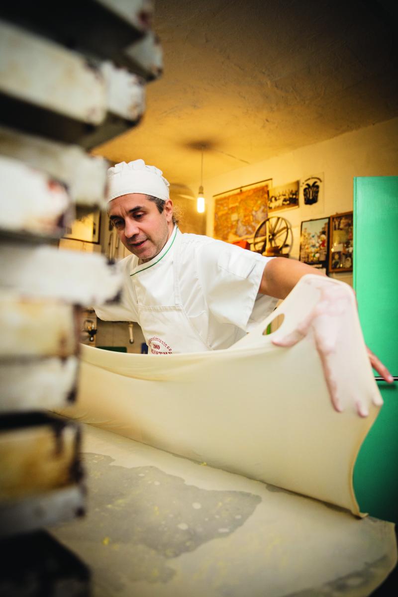 Droppar av olivolja blandat med smör glänser på Filippos Bantis händer när de kastar en rund, lövtunn deg i luften. Den lyfter i en snabb båge och är påfallande lik en pizza men mycket tunnare. När degen ligger på bordet igen arbetar hans händer snabbt och vant bakom mjölmolnet. Filippos Bantis föddes i det här köket, en trappa ned från bageri Bougatsa Bantis. Att det är en sanning med modifikation kan man förstå av hans skrattande blick. Men verkligheten är nog inte långt därifrån. Det drevs först av hans far och togs sedan över av Filippos. Det är inget vanligt bageri, det är ett bougatsa-bageri.