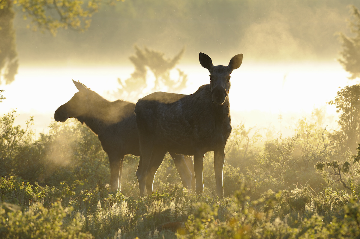 En treårig hane sätter sig upprätt och tittar på oss. Vi tittar tillbaka och gömmer oss bakom våra teleobjektiv.