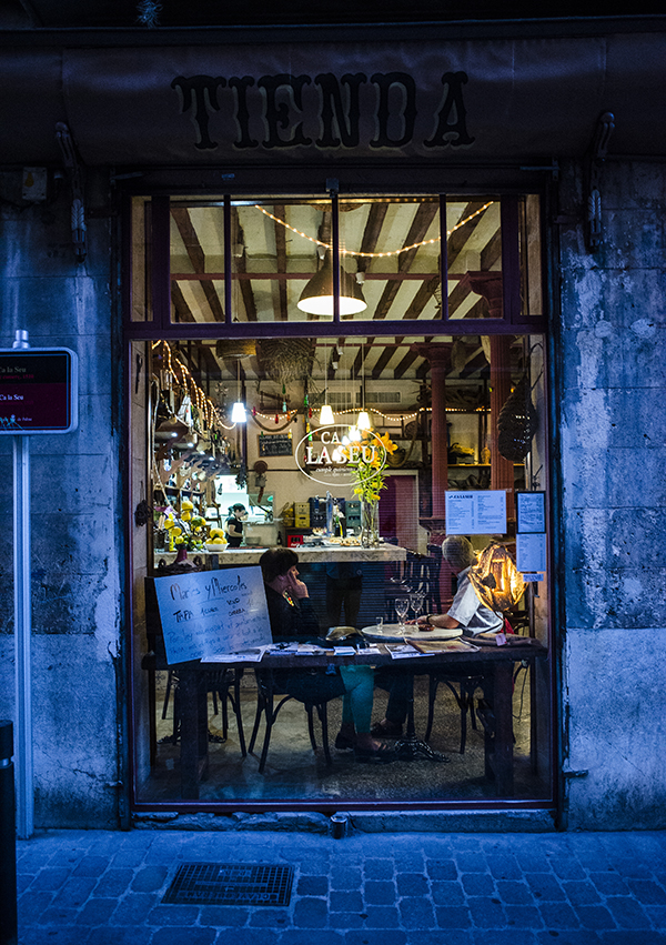 När solen snabbt sjunker mot horisonten sätter jag mig gärna en stund på Café Murada, en liten italiensk pärla, som ligger en bit bortom katedralen i gamla stan, i ett område som håller på att bli hett i upprustningsiverns Palma. Det är ett av Palmas äldsta områden som var judiska hantverkskvarter under morernas tid och som för bara några år sedan ansågs lite off och ganska nedslitet. Så började det hända saker. Stället är öppet som kafé bara på våren, försommaren och på hösten. Under sommaren är restaurangen endast öppen kvällstid på grund av hettan vid stadsmuren. Öppettiderna kan variera så kolla gärna hemsidan innan. Utsikten över Palmabukten är hänförande, solläget under eftermiddagen likaså.