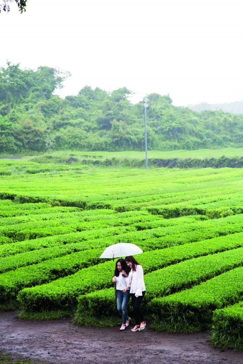 På vulkanen Hallahans sluttning ligger teplantagen O´Sulloc. Namnet är inte irländskt, utan koreanskt och betyder ungefär ”Oh, vilket grönt te i snön”. Snö har det inte varit här på många år, men det regnar ganska ordentligt när vi kör in på gårdsplanen. Här kan man vandra mellan teplanteringarna eller förkovra sig i världens te-historia på det intilliggande museet. Givetvis finns en stor tesalong där man kan prova någon av de många tesorterna, eller testa en smaskigt krämig mjukglass smaksatt med grönt te. Inte långt därifrån ligger bonsaiträdgården Spiritual Gardens som passar extra bra att besöka när det regnar, de klorofyllstinna färgerna blir ännu djupare av fuktigheten.