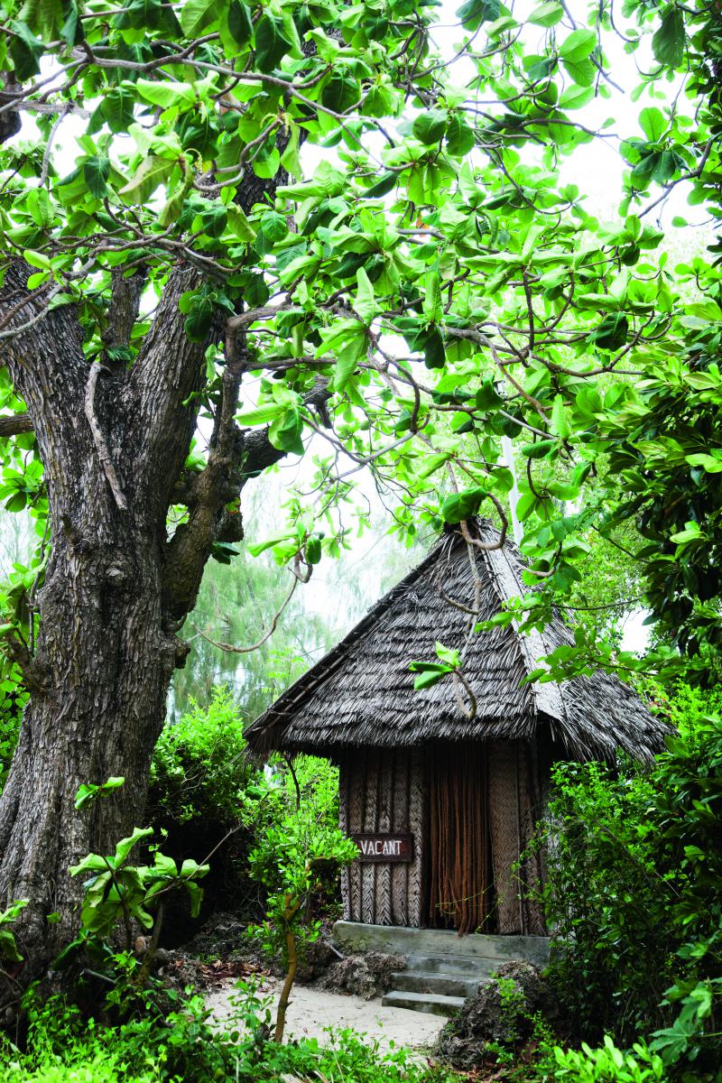 När mörkret sänker sig över den regnskogsklädda kobben traskar vi bort till den gemensamma storhyddan, en träkonstruktion med högt i tak som fungerar som restaurang, besökscenter och huvudkontor. Här serveras grillad fisk och skaldjur med kryddiga grönsaksgrytor som puttrat länge över glödande kol. Efter middagen står det kokoskrabba på upplevelsemenyn. Utrustade med ficklampor ger vi oss av på smala stigar, in mot öns hjärta tillsammans med guiden Chaga. Kokoskrabban – uppkallad efter sin förmåga att kunna öppna kokosnötter med sina bara klor – är världens största landlevande kräftdjur, och ett av få som klättrar i träd. Det blir vi snart varse när det börjar rassla runt omkring oss i den becksvarta djungeln. Framför oss på stigen avslöjar våra ljuskäglor ett riktigt stort exemplar med mörkröd, prickig sköld. De är enorma djungeldjur som kan bli uppåt 45 cm i diameter över skölden. När jag sveper med ficklampan ser jag ytterligare ett tiotal krabbor som kryper eller sitter i träden runtomkring oss, framlockade av de kokosbitar som Chaga har strött ut. I träden sitter också vita kingfisherfåglar blickstilla och sover bara någon meter från stigen. Jag skulle kunna sträcka ut handen och röra vid en av dem.
