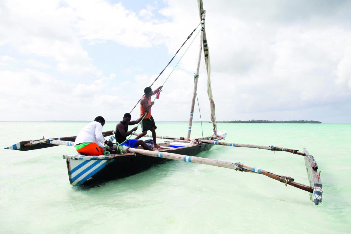 Pemba är en nation av sjöfarare och havet är en viktig del av det dagliga livet. En dag gör vi en utflykt till en närbelägen sandbank i en traditionell dhow tillverkad av mangoträ. Sandbanken dyker upp och försvinner två gånger om dygnet så man kan inte stanna för länge. Vi dukar upp picknick på den bländande vita sanden och njuter av fisk och färsk frukt. Medan några i besättningen gör akrobatiska konster i sanden studerar vi genomskinliga krabbor som snabbt försvinner ner i sina hål. När sandbanken börjar krympa i kanterna är det dags att ge sig av. Det har börjat blåsa upp, den friska vinden ger fin skjuts åt båten som bestämt klyver vågorna. Några av sjömännen agerar burkslavar ute på de smala stag som balanserar skrovet. Det känns robust ända tills en stor våg sköljer över oss och fyller båten och våra ryggsäckar med vatten. Kapten Ali bestämmer sig för att styra in mot kusten medan vi övriga får ösa. Det känns aldrig skrämmande, men alla tar det på stort allvar. Vi får vada in sista biten till stranden, och sedan väntar en halvtimmes promenad över halvön i dyngsura kläder. Tack och lov värmer solen och vi blir glatt påhejade av både barn och vuxna där vi traskar förbi odlingar och byar.