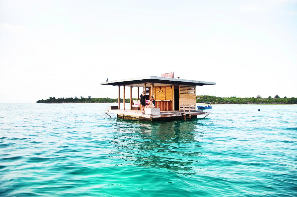Rummet flyter på ytan men är fast förankrat med ett femtonsankare i varje hörn. Uppe på flotten finns en träveranda med solbäddar och ett hus med toalett och enkelt kök. Vatten strömmar fritt mellan plattformen och själva rummet under för att göra belastningen på konstruktionen så liten som möjligt. På kvällen kommer en båt med middagen som dukas upp på verandan. Här saknas inget och myggen lyser med sin frånvaro. Själva undervattensrummet är enkelt, nästan spartanskt, med stora panoramafönster ut mot havet i tre väderstreck. Tankarna går till en trädkoja, här finns samma starka, nästan fysiska känsla av att vara mitt i naturen. Miljön är rogivande, det knäpper och plaskar när flotten sakta gungar i takt med vågskvalpet.