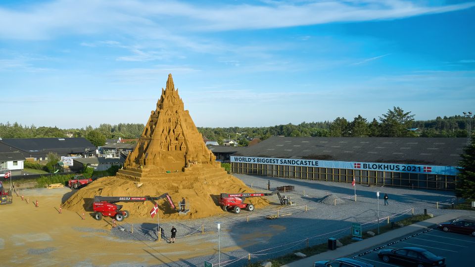 Med en höjd på 21,16 meter slogs det tidigare rekordet från 2019 i Tyskland. Det nya rekordhöga sandslottet i Blokhus har också en mäktig sockel som är 32 meter bred.