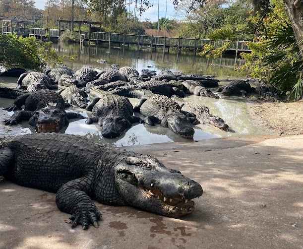 5000 alligatorer i ett område som för tankarna till High Chaparral i Småland. Men nu är vi i Florida. Och i världens huvudstad när det kommer till temaparker: Orlando. Och här finns det nöjesfält som får Gröna Lund och Liseberg att framstå som ett kringresande tivoli i spenaten. Problemet är att Disney och Universals parker är extremt dyra. Gatorland har en prisbild som gör att även vi med en värdelös valuta har råd att komma in. Det häftigaste är förstås att åka zipline ovanför bassängerna fyllda med livsfarliga djur. Jag fick möjlighet att mata alligatorerna med kycklingklubbor. De lata jävlarna orkade knappt öppna munnen, men dessa bestar är ändå inget att leka med i det fria. Får de tag i en arm eller ben snurrar de runt tills kroppsdelen lossnar. Så har alligatorerna hållit på i ungefär 250 miljoner år.