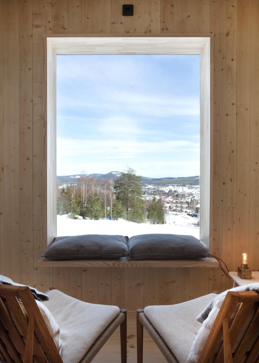 Frukosten serveras på det intilliggande Bergshotellet – eller i en frukostkorg som levereras direkt till rummet. Sedan är det bara att kliva i pjäxorna och ta trappen ner till backen.